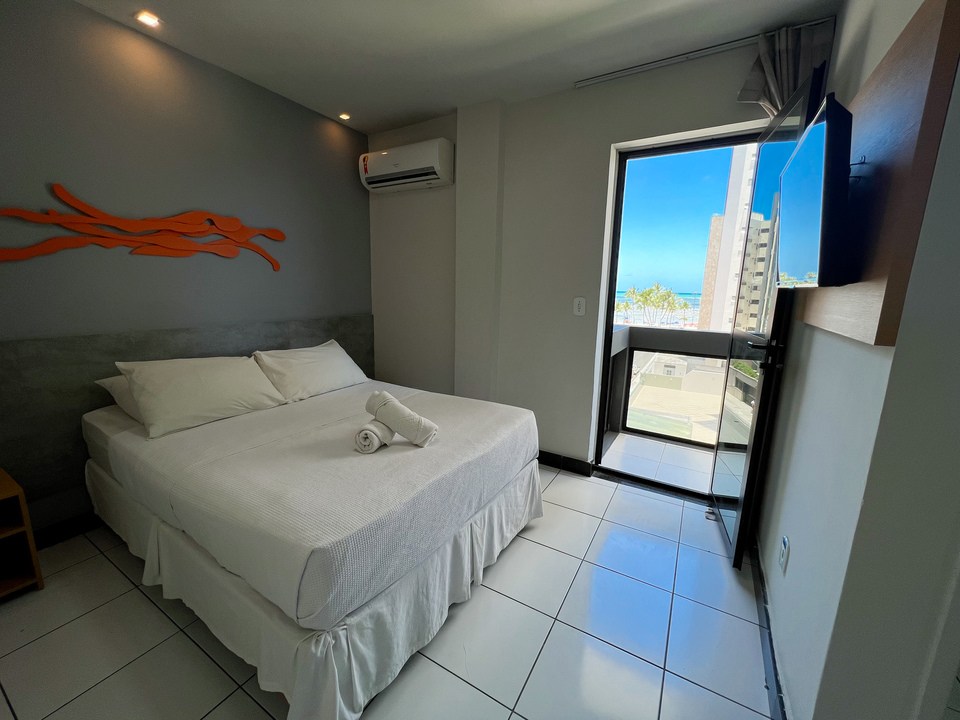 Nossa suíte com vista para o mar oferece uma experiência incomparável, onde os hóspedes podem relaxar e se encantar com a deslumbrante vista das águas azuis, proporcionando momentos de tranquilidade e serenidade durante toda a estadia.
