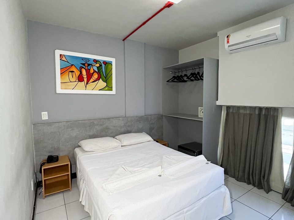 Nossa suíte standard casal oferece conforto e comodidade para uma estadia agradável, proporcionando aos nossos hóspedes uma experiência acolhedora e relaxante durante sua vista.